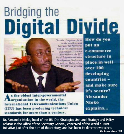 known as ITU-D, launched the World e-Trust Initiative in 2002 to help developing nations accelerate the pace of economic development through the effective use of information and communication technology (ICT). Individuals